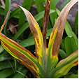 Cordyline and Dracaena species may be infected by the leaf spot (Phyllosticta maculicola) which forms small brownish spots that have yellowish margins and has black fruiting bodies that forms coils of spores. These plants are also susceptible to other leaf spots such as (Glomerella cincta) and (Phyllosticta dracaaaenae). Keep foliage dry to avoid infection.