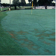 Dead patches of lawn appear as the underling soil becomes dry and repels water. Only the dead grass is attacked by the fungus that produces a substance which coats the soil particles, making them water replant. This is known as hydrophobic (water-hating).