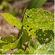 Veronica species are infected by the leaf spot (Septoria veronicae). The symptoms include small violet to brown spots appear on the upper surface of the leaf and correspondingly yellowish brown on the underside. The spots converge forming a scorched shot-hole appearance and eventually death of the leaf.