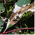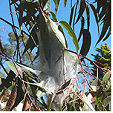 Stem Canker of Red Flowering Gum (Sporotrichum destructor) enters through wounds in the bark forming cankers in the trunk and branches, splitting the bark apart, revealing the wood and infesting the surface with powdery spores. This infection causes the leaves to wither and then the branches die, eventually killing the tree.