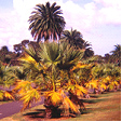 The only palms susceptible to Fusarium wilt are Phoenix species, especially Phoenix canariensis and juvenile Washingtonia filifera. Initially the leaflets turn yellowish then brown, on mature fronds causing them to die. Eventually only tufts of new growth remain the plant. As the infection continues the plant collapses and dies.