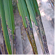 Orchids such as Cattleya, Cymbidium, Cypripedium, Dendrobium, Epidendrum, Oncidium, Paphiopedilum, Phalaenopsis and Zygopetalum species are infected by Phomopsis Rot (Phomopsis species). This fungal problem forms a firm brown rot that appears on the leaves, pseudobulbs and rhizomes. The affected areas have yellow margins and the centre is covered in tiny black specks (fruiting bodies). Cattleya species are particularly susceptible. These plants are also infected by Psudobulb Rot (Mycolleptodiscus coloratus implicated). Dark spots appear on the pseudobulbs eventually causing extensive rot and killing the bulb.